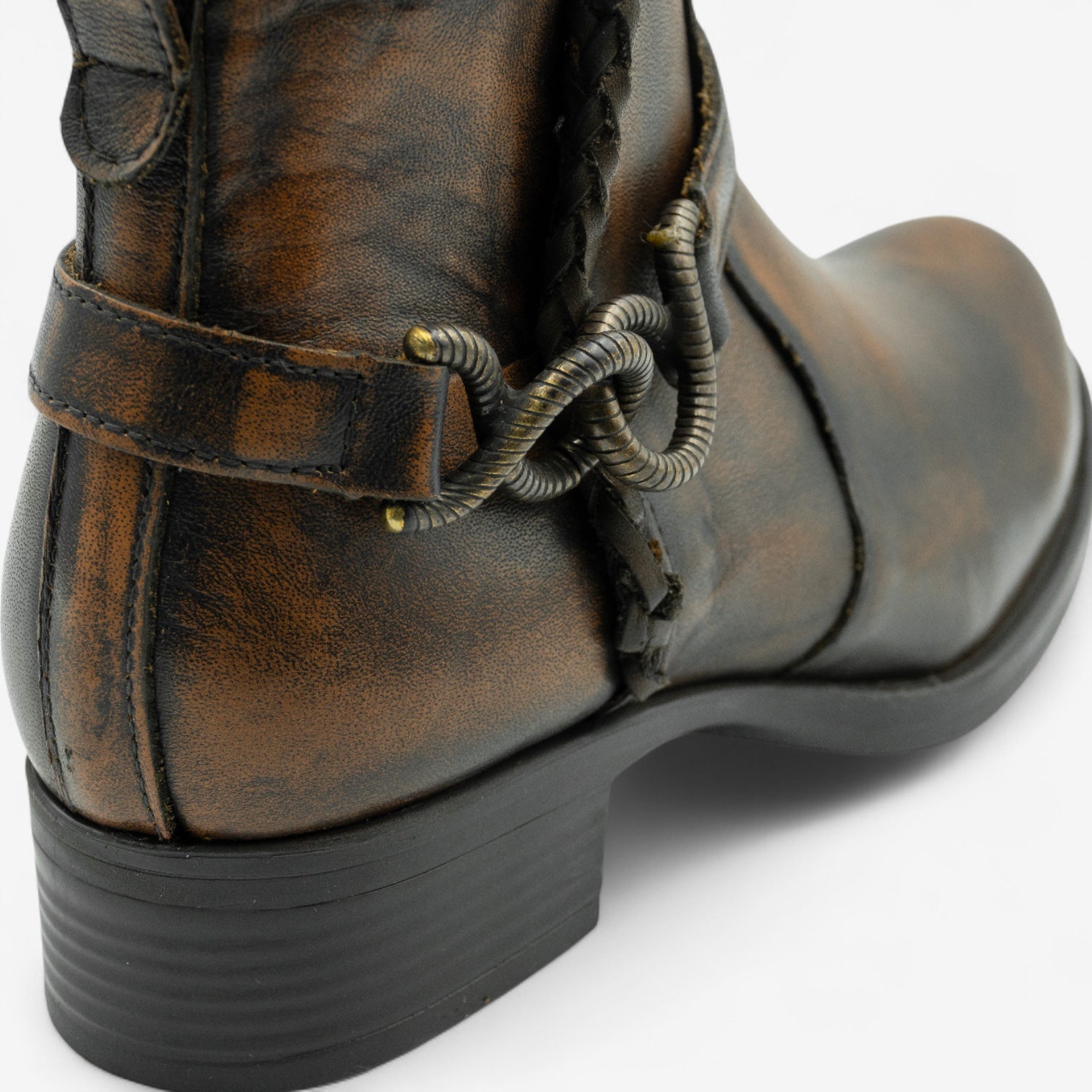 El Lazio es un botín de perfil bajo con construcción firme y detalles cuidadosamente trabajados. Confeccionado en piel, incorpora un trenzado artesanal en caña y empeine, además de una aplicación metálica lateral que aporta personalidad sin exceso.