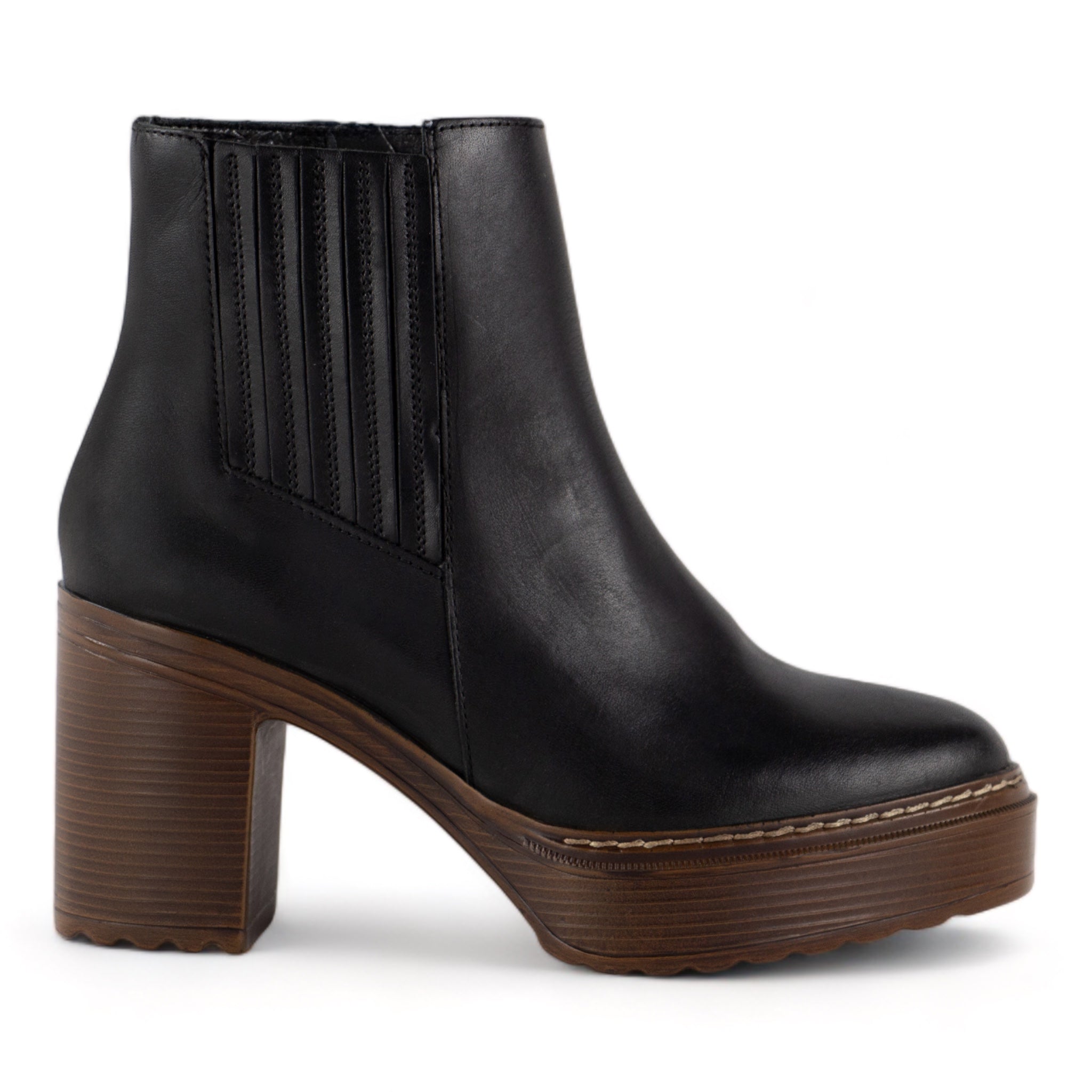 El botín Claudia es la combinación perfecta de elegancia y comodidad. Hecho de piel genuina, este botín te brindará un estilo sofisticado y duradero. Su diseño clásico con tacón de plataforma  te dará un toque de altura y distinción, sin sacrificar la comodidad.