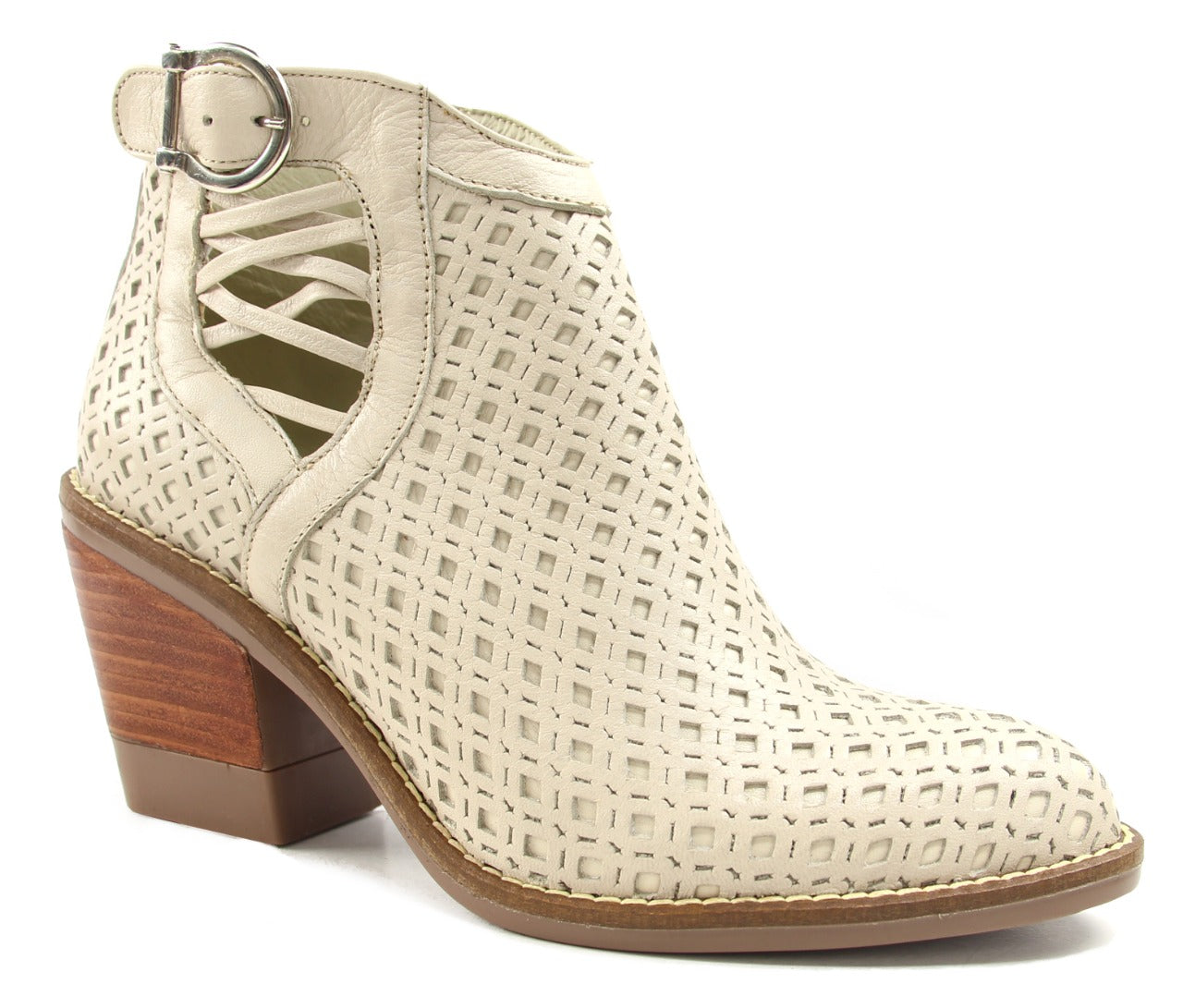Un botín que equilibra elegancia y frescura con su diseño estilizado y detalles abiertos que permiten que el pie respire, diseñado para la temporada de primavera. Su acabado en ivory resalta la sofisticación de su silueta, mientras su estructura ligera y suela resistente garantizan estabilidad y comodidad en cada paso. Versátil y atemporal, es la elección perfecta para quienes buscan un calzado sofisticado sin renunciar a la frescura y el confort.