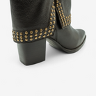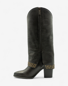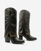 Olvida lo convencional. Su diseño rebelde, definido por una audaz capa de estoperoles y detalles de inspiración western, crea una bota destinada a robarse todas las miradas. Es la pieza perfecta para un concierto, un festival, una noche de fiesta o simplemente para esos días en los que quieres sentirte imparable.