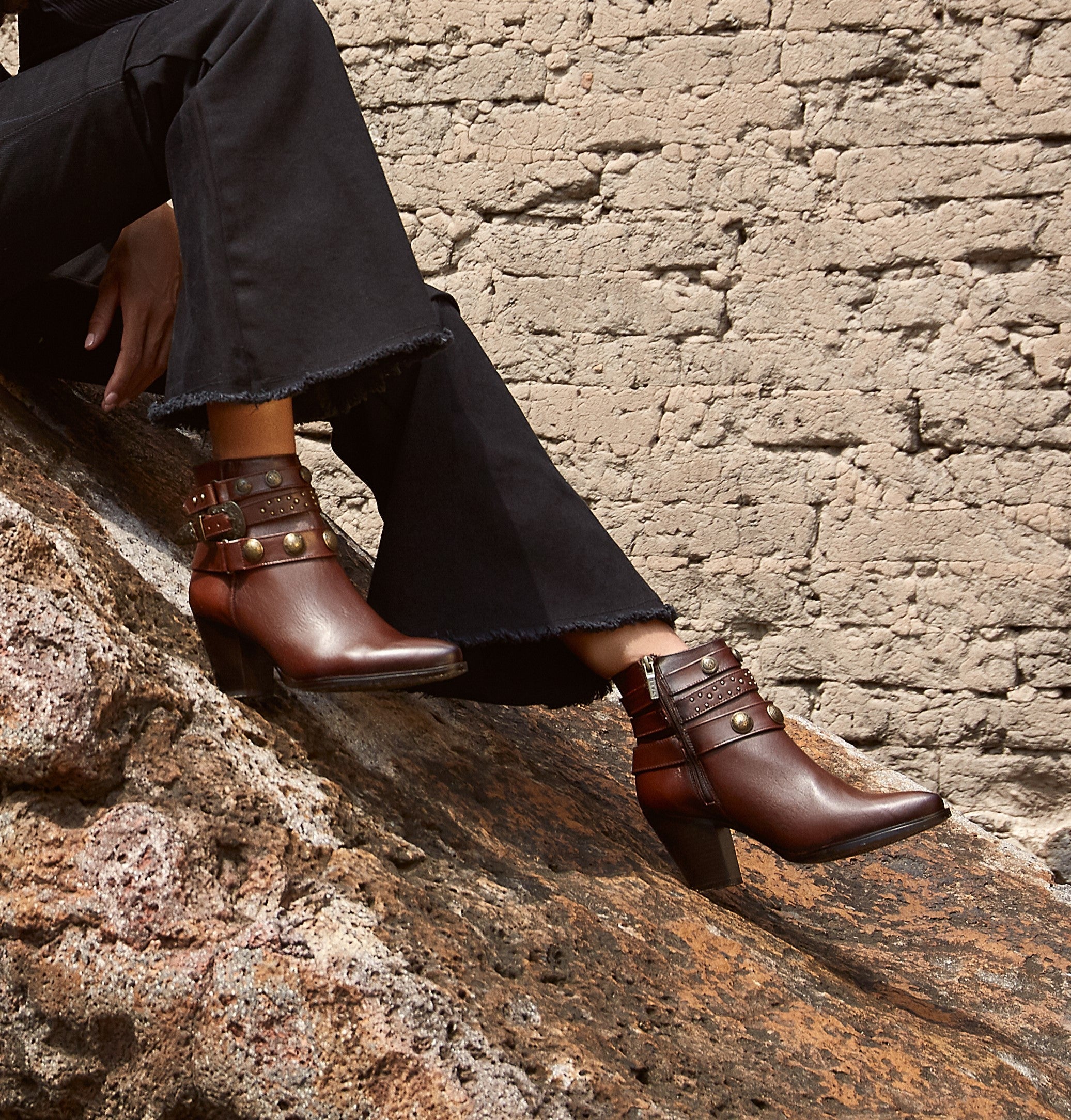 El botín Camber es una declaración de estilo y actitud. Confeccionado en piel y con un diseño vanguardista, este botín te hará destacar en cualquier ocasión. Presenta un diseño clásico con un toque moderno gracias a sus estoperoles metálicos y su hebilla.