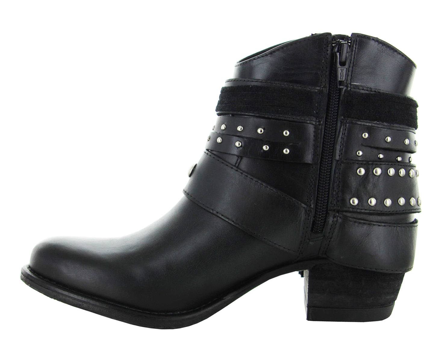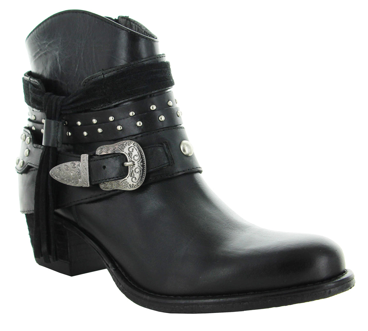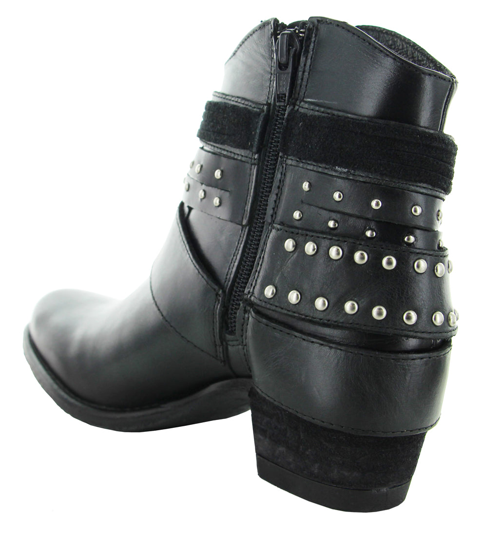 Modelo de botín con adornos en arnés usando elementos tradicionales western para crear un estilo clásico y vanguardista