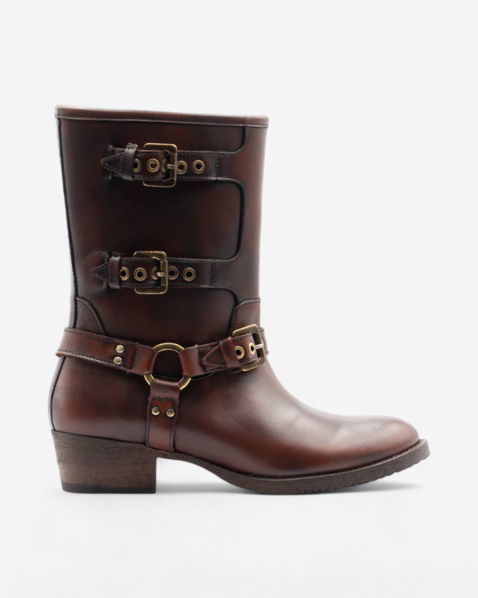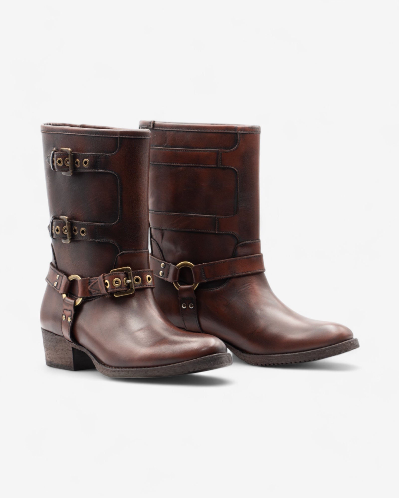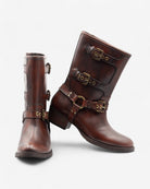 Un clásico reinventado. Estas botas marrones combinan la estética biker con un toque moderno y sofisticado. Su diseño versátil las hace perfectas para cualquier ocasión, desde un look casual hasta uno más formal.