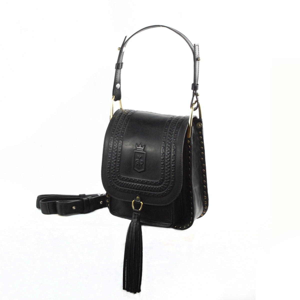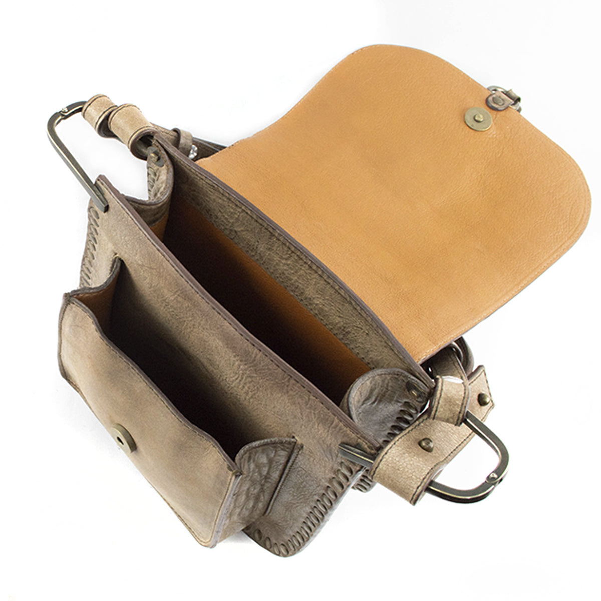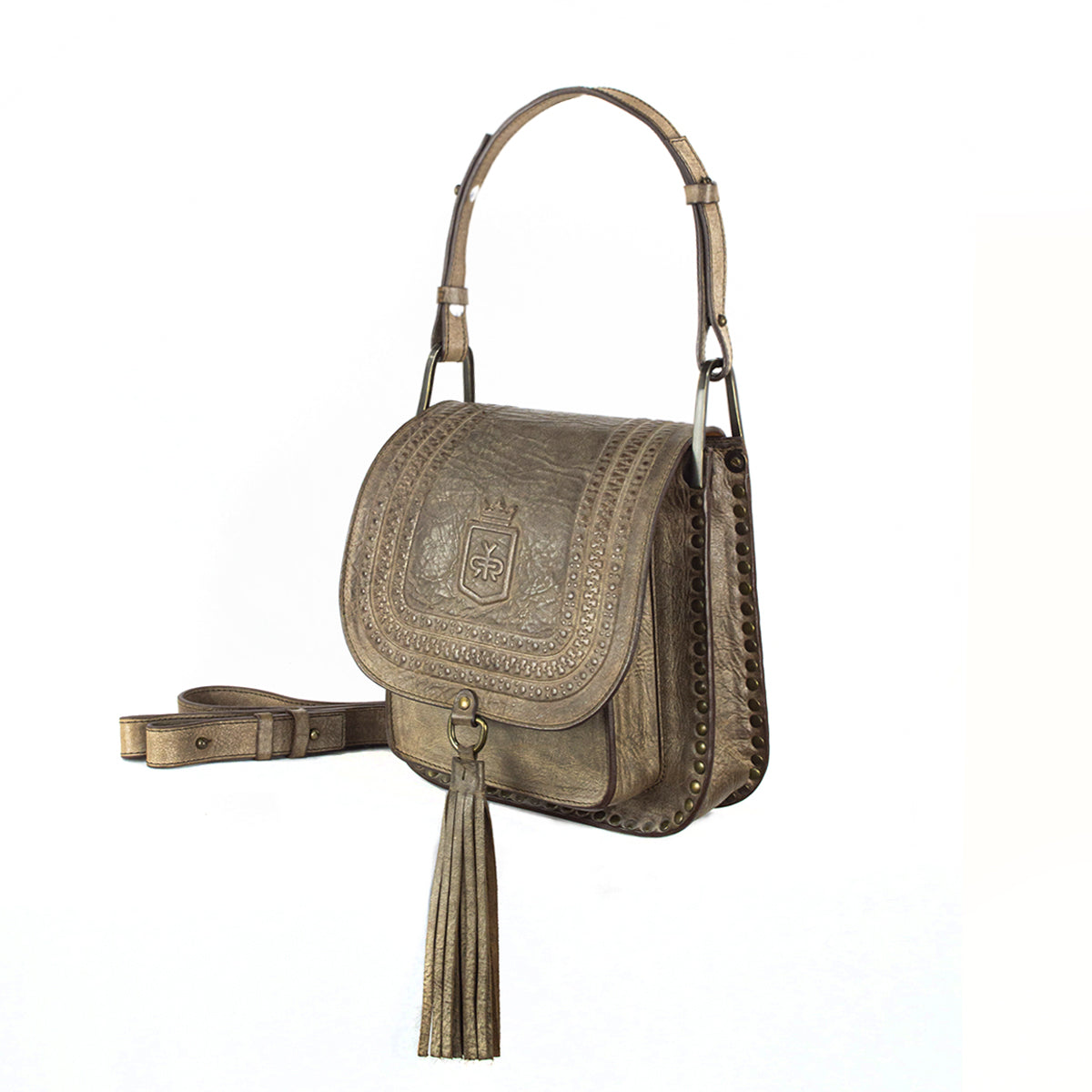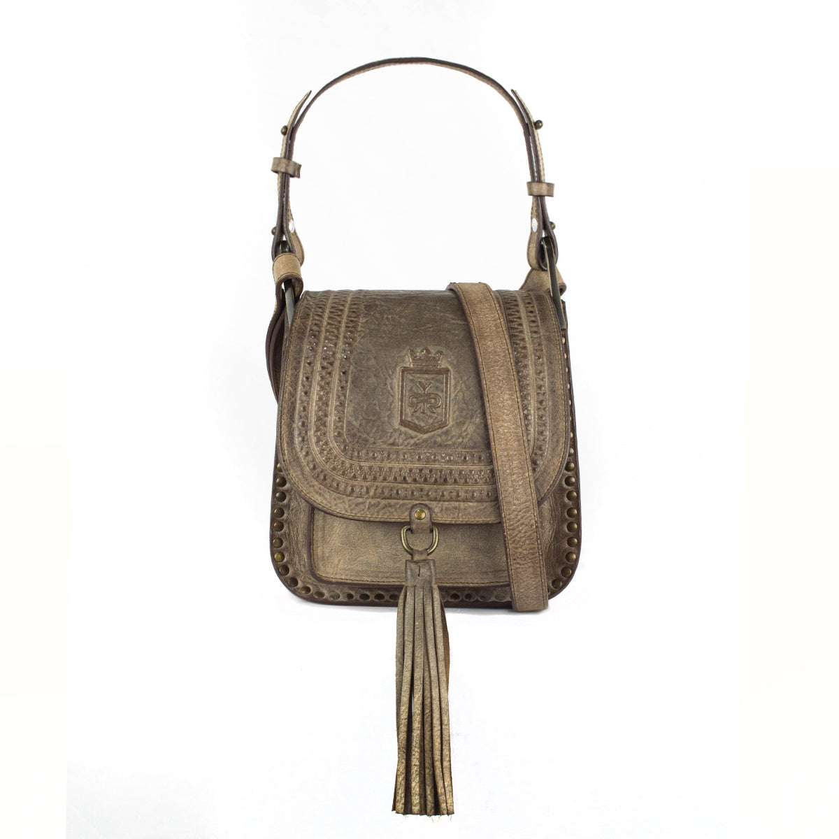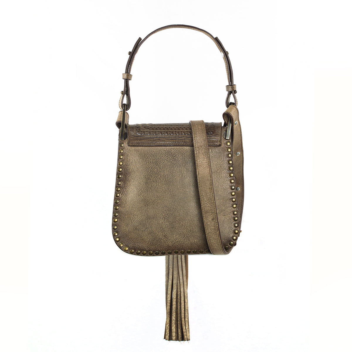 Bolso LYARD en piel de vacuno. Con diseño grabado y detalles metálicos. Rígida.
